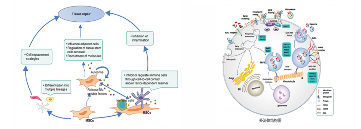 干細(xì)胞通過多向分化機(jī)制發(fā)揮作用,還根據(jù)所處環(huán)境分泌各種類型的細(xì)胞因子、外泌體、囊泡,發(fā)揮相應(yīng)的功能。