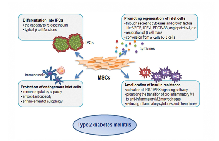 1.臍帶多功能干細(xì)胞直接分化成為成胰島β細(xì)胞,分泌胰島素;