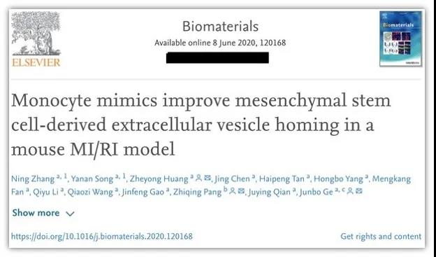 復(fù)旦大學(xué)附屬中山醫(yī)院與復(fù)旦大學(xué)藥學(xué)院合作開發(fā)了一種單核工程化修飾的間充質(zhì)干細(xì)胞外囊泡,用于增強(qiáng)干細(xì)胞外囊泡對缺血性損傷心肌的歸巢和修復(fù)作用。