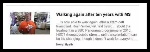 英國廣播公司(BBC)報(bào)道,1名多發(fā)性硬化癥患者在接受干細(xì)胞移植后重新站立起來。