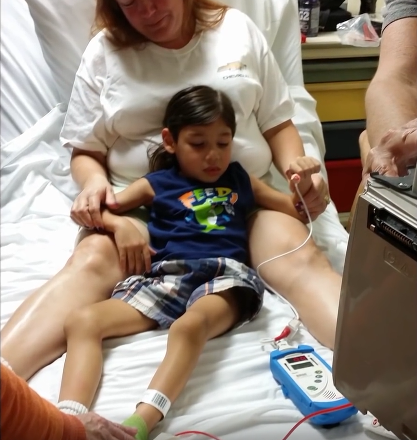 杜克大學(xué)使用自體臍帶血治療腦癱取得積極成效,圖為患兒阿什頓正在輸注臍帶血,輸注后她的語言和行動能力獲得改善。